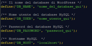 WordPress to connect to the database needs identification information such as: your name, username, password, and host (server). All this information can be retrieved from our provider and is stored in the wp-config.php file.