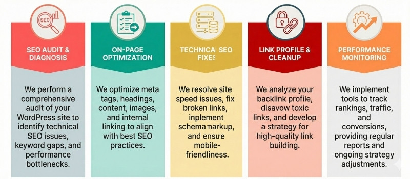 WordPress websites frequently face SEO issues due to plugin conflicts, outdated themes, broken permalinks, and incorrect SEO configurations. Our team specializes in diagnosing WordPress-specific errors and repairing the underlying causes so that your website regains stability and performs better in search results. After repair, your website becomes faster, cleaner, and optimized for long-term visibility.